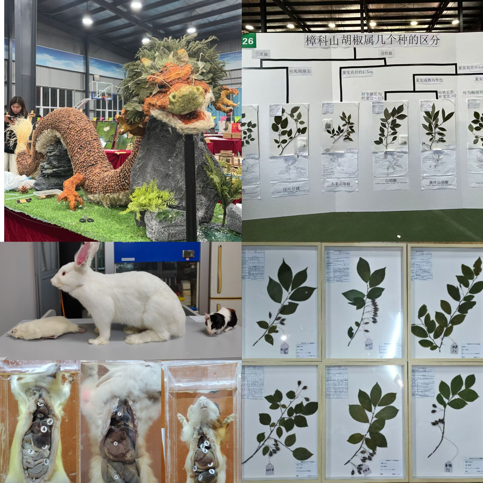 通过标本展示和答辩环节,我校张启信、陶瑞松老师指导,黄玲玲、顾继瑞等同学的作品《藏酋猴的剥制与骨骼标本》荣获动物组一等奖;王玲玲、陈延松老师指导,袁如意、王怡然等同学的作品《四种秤锤树属植物标本》荣获植物组一等奖;王占军、周璐璐、陆伟老师指导,侯铸珍、曹颖等同学的作品《一纸契约》荣获创意组一等奖。欧祖兰老师指导的《樟科山胡椒属几个种的区分》和王晶晶老师指导的《“肺”同凡响,“绿”动未来》荣获二等奖,陶瑞松、耿明老师指导的《实验动物标本展示》、杨星星、陈延松老师指导的《珍珠菜属植物标本》以及陈亚军老师指导的《药韵龙翔》荣获三等奖。
