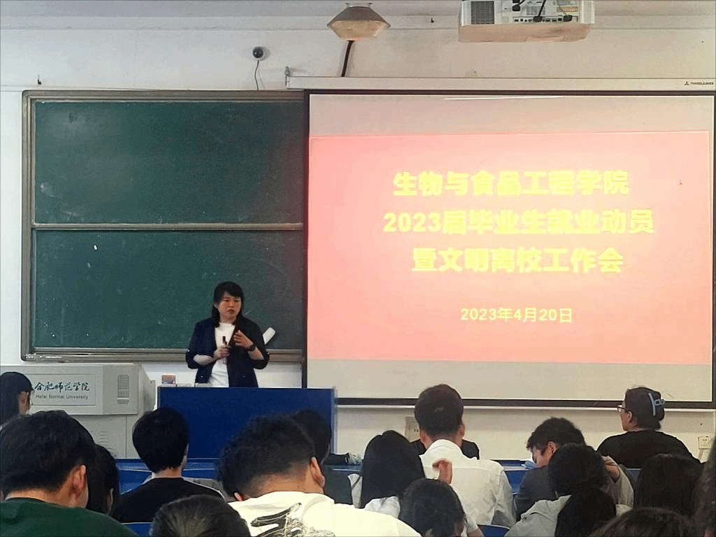 会上,郭桃芬首先对毕业生就业做了动员指导,分析了当前就业形势和就业压力,引导毕业生一要认清形势,把握机会;二要调整心态,准确定位;三要加强防范,注意安全。接着对毕业生文明离校进行了强调,要求毕业生在离校前这段时间,一要遵守校纪,顺利毕业;二要处好关系,树好榜样;三要文明离校,和谐校园。要求党员同学发挥好先锋模范作用,班干站好最后一班岗。最后她希望同学们继续填好人生履历表,努力在各行各业、各个领域作出卓越成就,做一名有理想、有品德、有本领、有担当的合师学子,在全面建设社会主义现代化国家新征程中燃烧激情,放飞梦想!