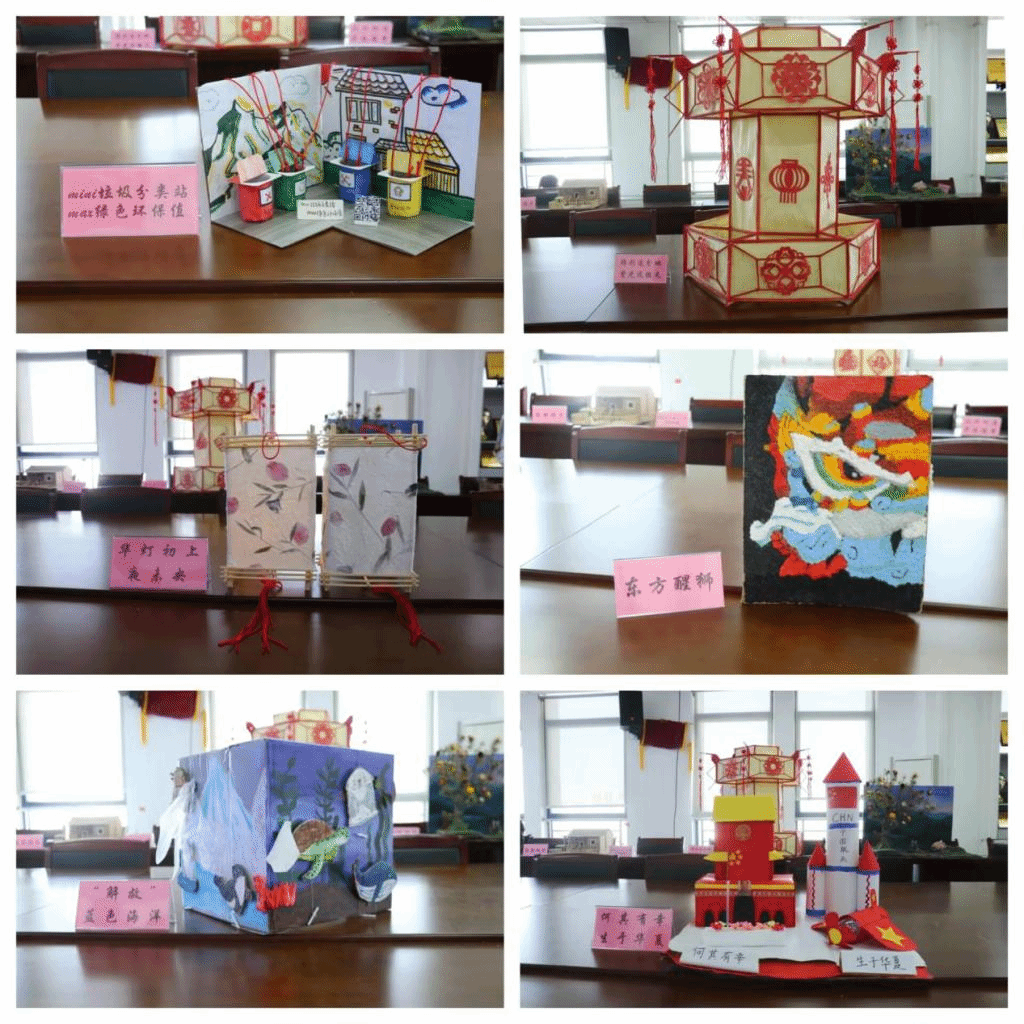 此次比赛作品主题多种多样,在比赛现场,选手们依次对各自的作品进行了解读。其中《mini垃圾分类站,max绿色环保值》、《“解救”蓝色海洋》等作品利用生活中身边的物品,围绕“建设人与自然和谐共生”主题,积极宣传倡导保护环境。《东方醒狮》以黑色作为背景,将一头跃跃欲试的舞狮描绘得栩栩如生,表达了选手们对中国觉醒的自豪。《何其有幸,生于华夏》》以天安门为主要元素进行创作,表达了同学们对祖国的热爱。《缛彩遥分地,繁光远缀天》、《华灯初上,夜未央》分别以中国传统艺术品——花灯、宫灯为主体,利用废弃的一次性筷子,废弃的白纸制成,化腐朽为神奇,震撼全场。