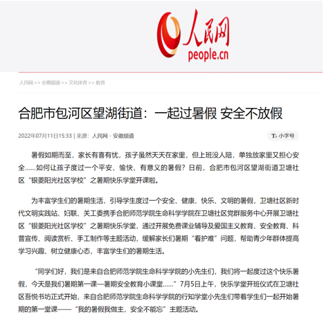 本网讯 近日,生命科学学院携手卫塘社区党群服务中心开展的“银菱阳光少年”之暑期行知学堂顺利结课。期间,学堂建设情况引起媒体的广泛关注。
