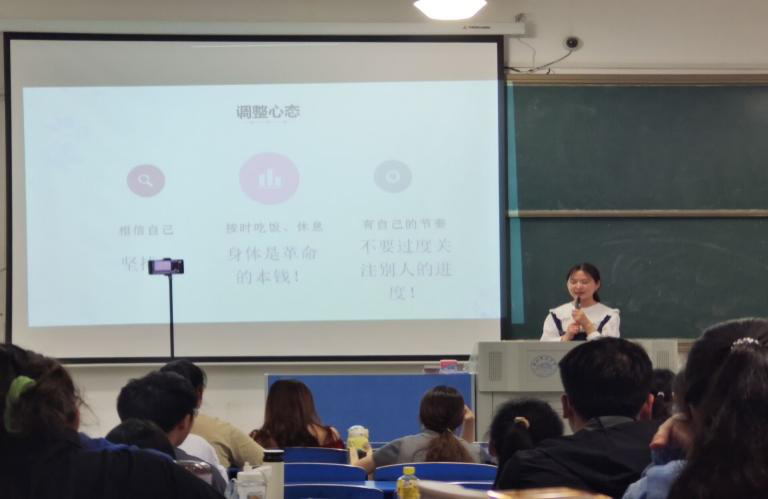 两位学长分别分享了自己的考研心路历程,向学弟学妹们传授了科学的学习方法以及获取学习资源的有效途径。刘磊在会上强调,大一大二阶段一定要扎实学好专业课,注重基础知识的学习和运用,对于疑难问题要勤练笔、多动脑,培养自己思考问题和解决问题的能力。蒋凯莉提醒大家不论是奋战考研还是日常学习,保持健康的体魄和良好的心态必不可少,劳逸结合会事半功倍。本次分享会结束后,同学们纷纷表示收获颇丰,精神上受到了极大鼓舞和启迪。