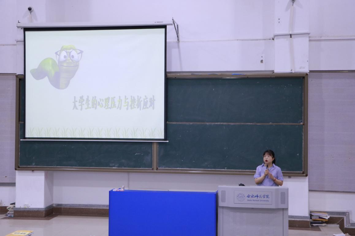 本网讯 为促进大学生健康成长,提升大学生应对心理压力与挫折能力,生命科学学院于5月18日中午在逸夫楼西阶二教室开展心理健康专题讲座。讲座由教师教育学院吴姗姗老师主讲。