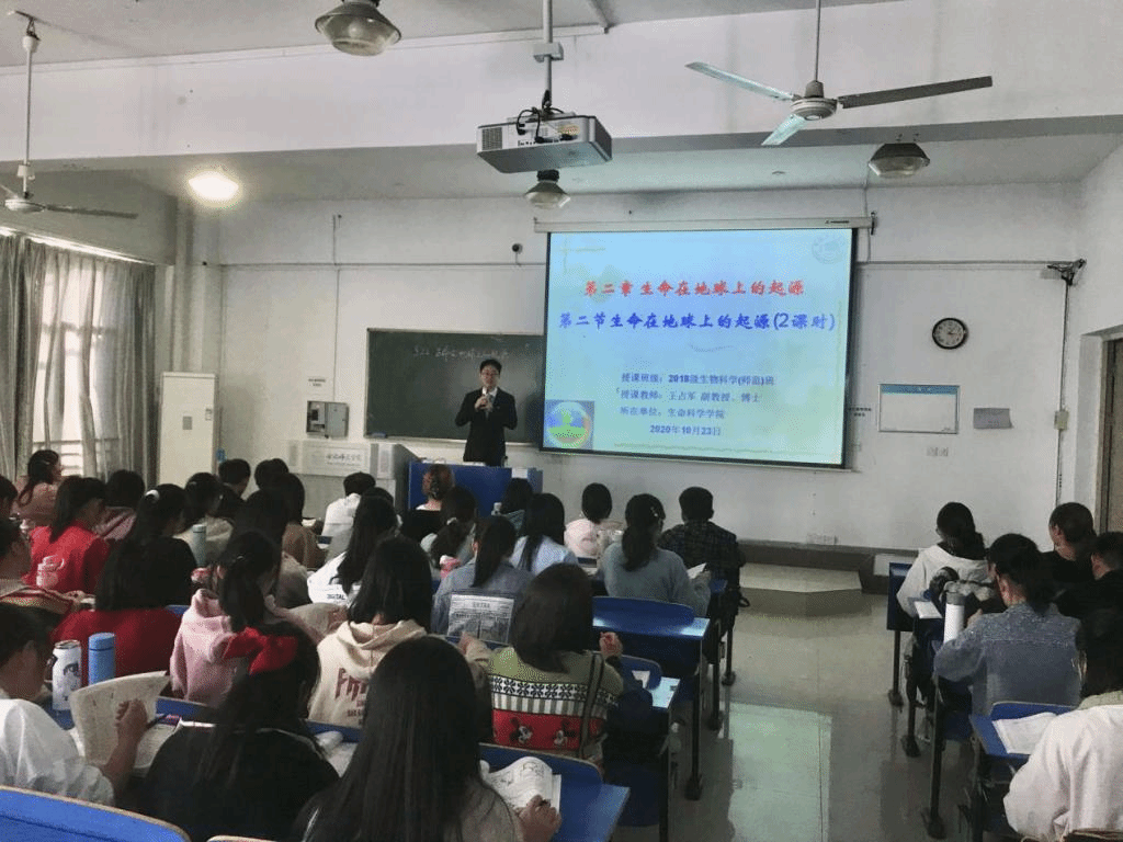 王占军讲授了《生物进化论》课程中“生命在地球上的起源”章节内容;他以“致敬中国人民志愿军抗美援朝70周年”的图片和“抗击新冠疫情英勇献身的英雄事迹”的视频为案例进行导入,拓展出“生命的意义”;随后,他主要讲解了“人类对生命起源的几种认识”和“生命起源的环境条件”两部分内容。课上各教学环节紧密相扣,精心设计了立德树人的课程思政教学环节;王占军在授课过程中,注重“以生为本”,有效组织学生积极参与课堂互动,活跃了课堂气氛,获得听课教师的一致好评。