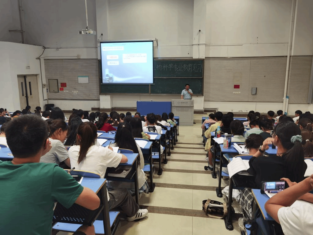 本网讯 为进一步了解基础教育教学及管理的实际情况,加强师范生对教师职业的深入了解,提高师范生的教学技能。根据生物科学专业人才培养方案及教学计划要求,生命科学学院于6月29日晚在逸夫楼西阶2教室举行了2019级、2020级生物科学(师范)专业教育见习活动。本次活动邀请了四十六中名师团队,分别是第四十六中学高级教师周龙清、宋慧、姚成龙、刘霄。活动由生物科学系教师徐慧敏主持,2019级、2020级生物科学(师范)专业全体学生参加。