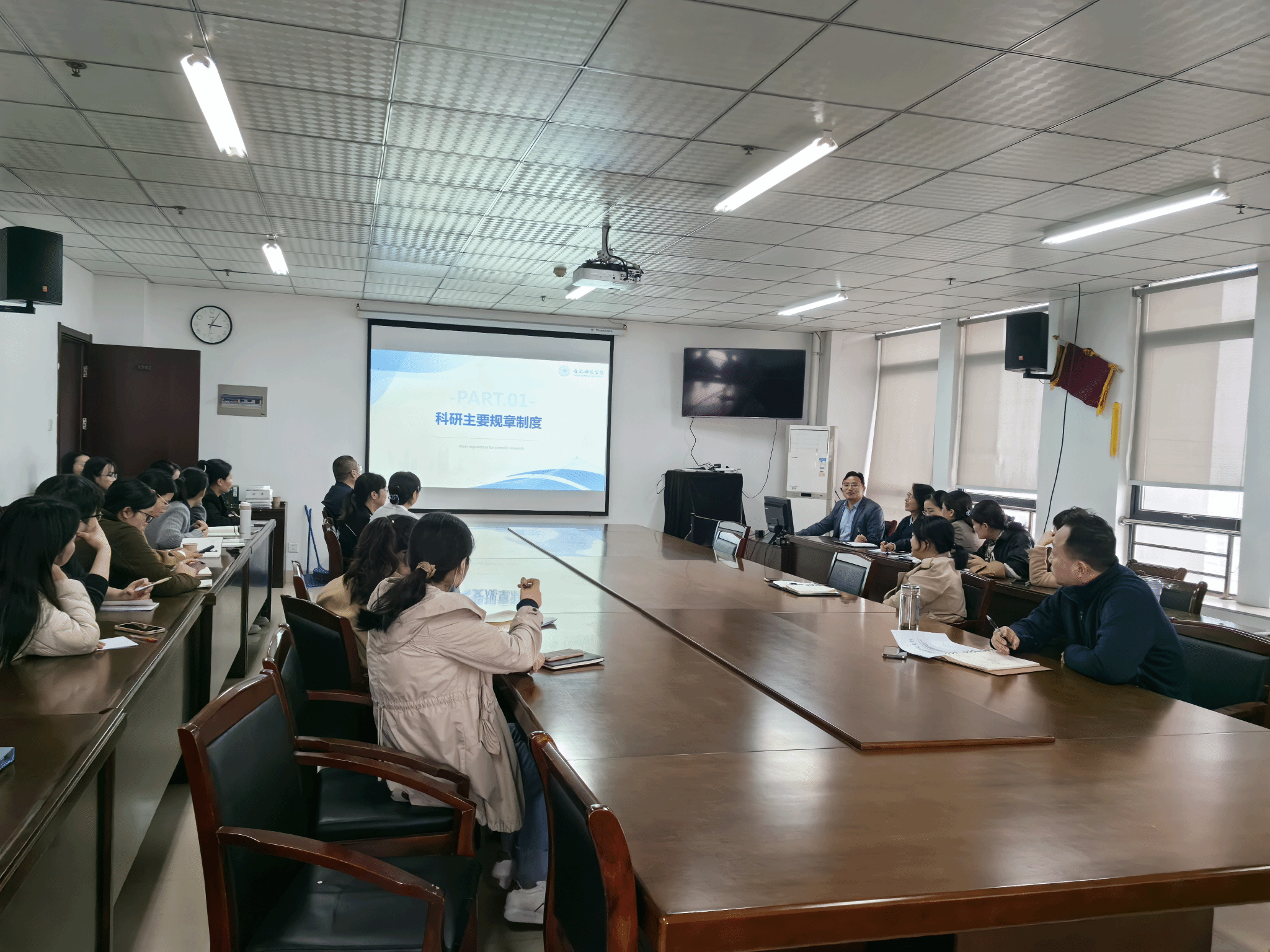 为进一步贯彻落实党中央、国务院关于科研经费管理改革和加强科研诚信建设有关要求和相关文件精神,增强广大教师对学校科研管理相关文件的理解,4月3日下午,beat365正版唯一官网邀请科研处副处长吕建国教授为学院全体教师做了一场科研政策宣讲培训会,会议由副院长朱桂兰教授主持,学院全体教师参加了宣讲会。