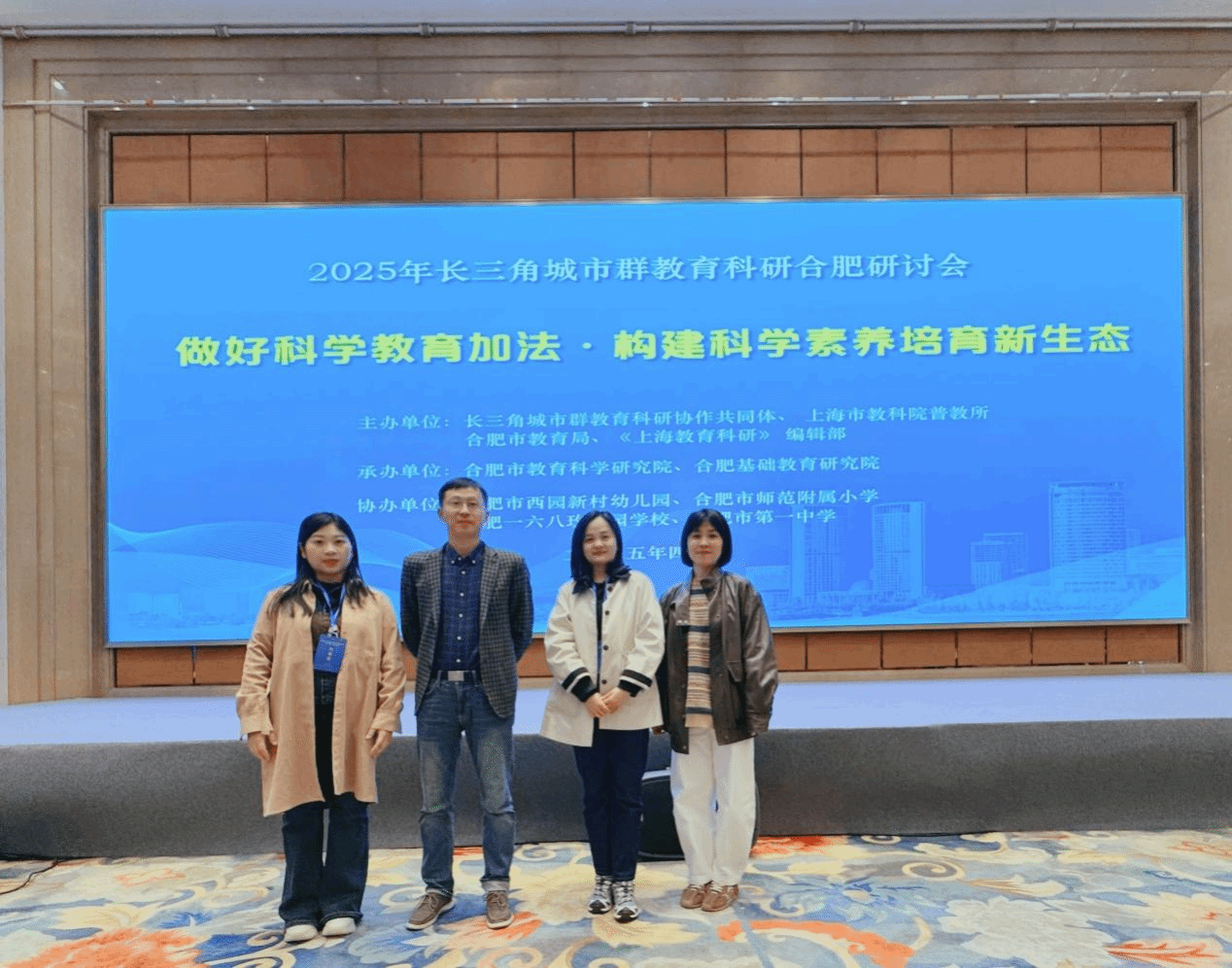 2025年4月1日至3日,由合肥市教育局等单位主办、合肥基础教育研究院承办的2025年“做好科学教育加法·构建科学素养培育新生态”长三角城市群教育科研研讨会,在合肥丰大国际大酒店隆重举行。beat365正版唯一官网科学教育专业教师团队应邀全程参与此次学术盛会,与来自长三角三省一市的300余名教育专家、科研人员和一线教师共话科学教育创新发展。