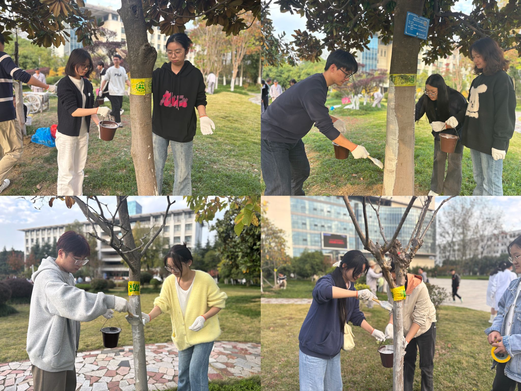 同学们分成8组,对学校树木树干刷涂石灰水,清洗植物挂牌,清除校园垃圾。活动现场,同学们分工明确,配合默契,井然有序,发扬了不怕脏不怕累的志愿服务精神,他们认真劳作的身影成为了校园里一道道靓丽的风景线。