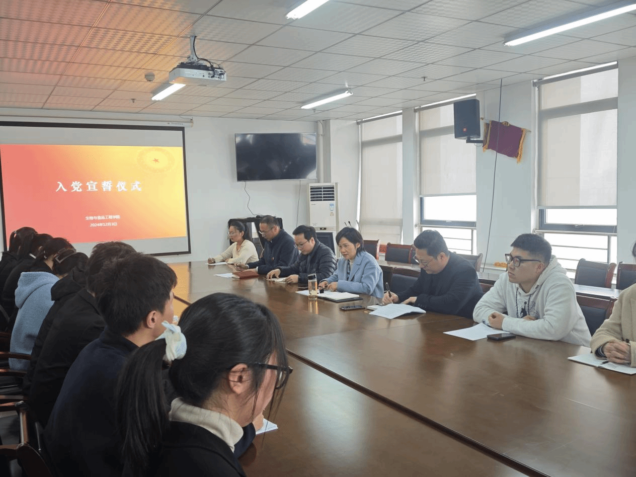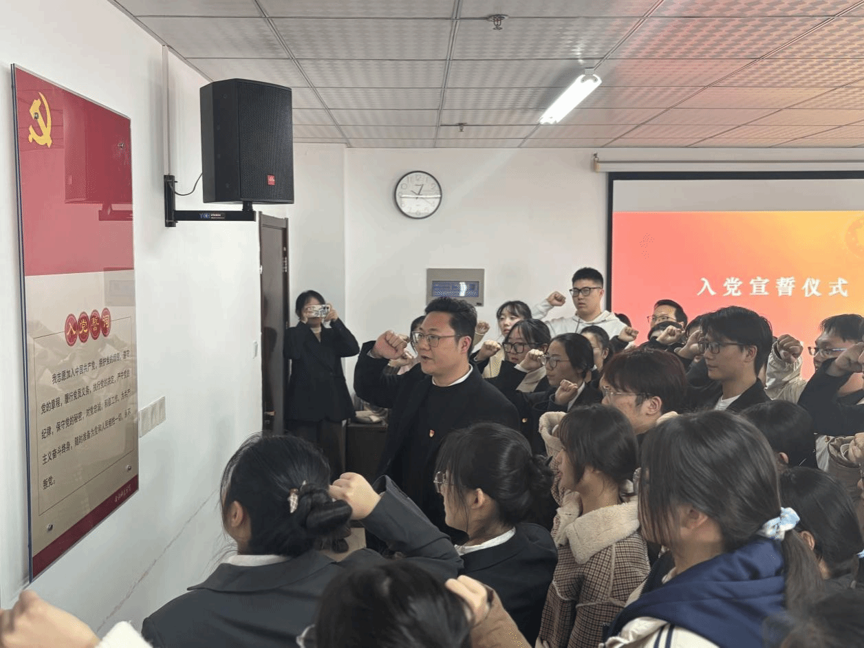 为了强化党员身份意识,增强新发展党员的使命感和责任心,深化对党的忠诚度。12月3日中午,beat365正版唯一官网在行知楼1502党员活动室举办了预备党员入党宣誓仪式,学院党委书记郭桃芬、副书记马喆、学生党支部书记周其松、徐浩然、李万成以及2024年下半年新发展的27名预备党员、正式党员代表及入党积极分子代表出席仪式,宣誓仪式由李万成主持。
