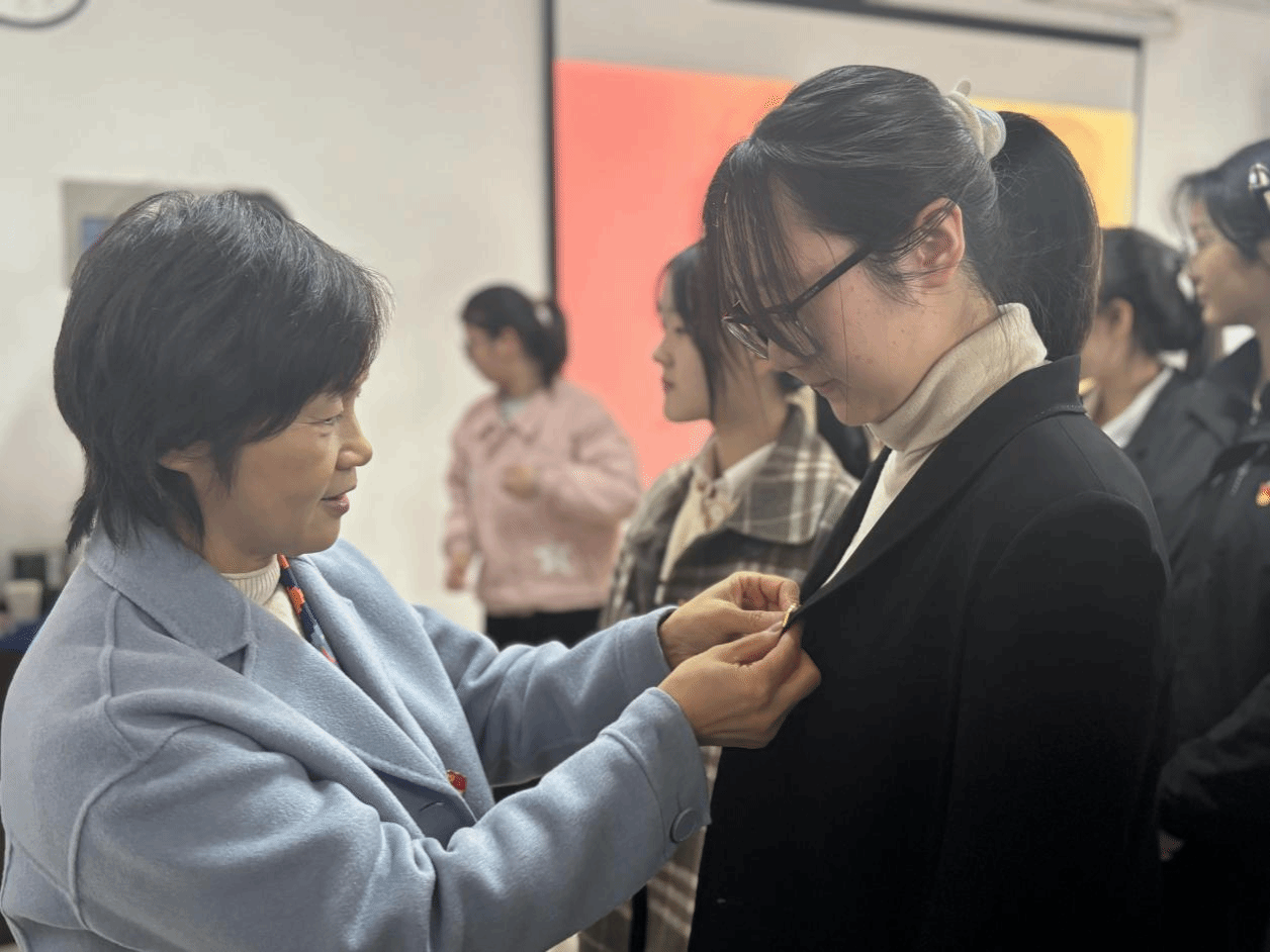 仪式在庄严的《国际歌》中拉开帷幕,首先由李万成宣读新发展的预备党员名单,与会的领导老师为预备党员佩戴党员徽章,增强党员的荣誉感、幸福感。