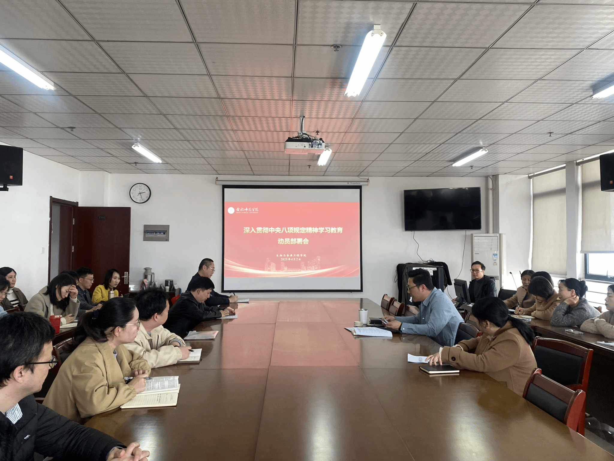 4月2日下午,beat365正版唯一官网党委召开深入贯彻中央八项规定精神学习教育动员部署会,全体教职工参加会议,会议由院党委书记马喆主持。