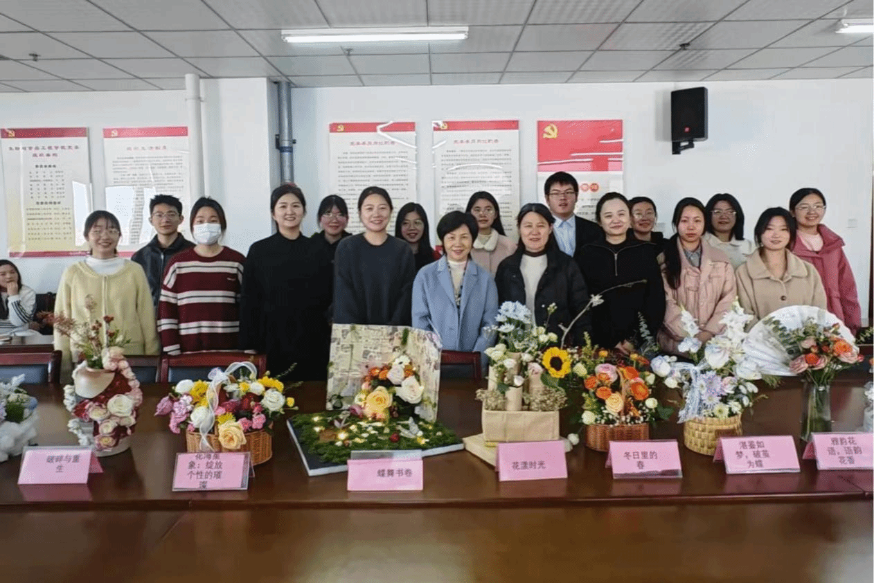 为提升大学生的创新能力,增加对美的感知,beat365正版唯一官网于12月2日中午在行知楼1502室成功举办了“织梦于冬,花语轻盈” 插花比赛。此次比赛由学院党委书记郭桃芬、专业教师李玲、代欢欢、周璐璐和辅导员黄洁担任评委。