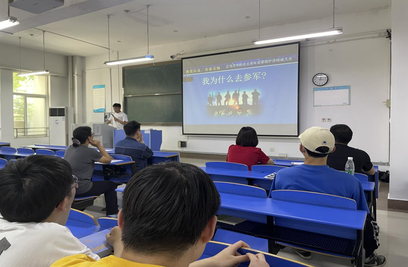 本网讯 为激发生命科学学院学子参军报国、献身国防热情,动员鼓励更多大学生参军入伍。5月6日下午,生命科学学院在逸夫楼A107教室举行“入伍政策宣讲会”。宣讲会邀请了保卫处(人武部)钟洁老师,退伍复学学生2020级程富强进行宣讲。生命科学学院党委副书记杨娜、毕业班辅导员杨帆以及2023届部分毕业生参加了宣讲会,宣讲会由杨娜主持。