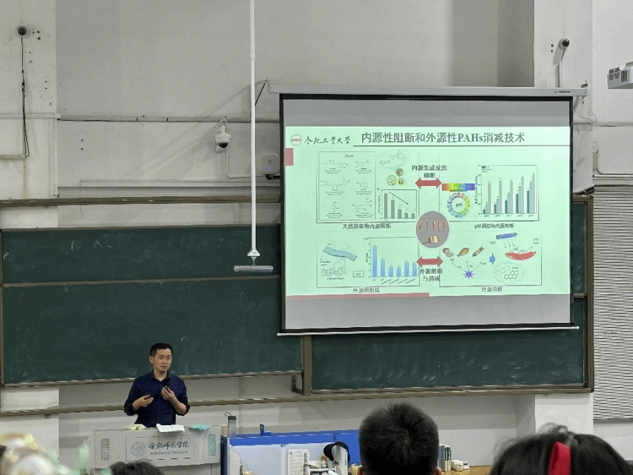 蔡克周教授课题组多年来一直深耕肉制品加工过程中多环芳烃来源及抑制研究,深入详细的解析了熏烤肉制品加工过程中PAHs生成的关键影响因素、生成机理以及相应的控制措施。研究工作致力于提高热加工肉制品食用安全性,保障食品营养与健康。蔡教授整场讲座妙趣横生,让同学们认识到科研源于生活,创新则是善于发现勇于探究。蔡教授还简要介绍了合肥工业大学食品与生物工程学院肉品加工与健康创新团队,包括团队教授专家成员、近五年主要研究成果、承担科研项目、省部级获奖和研究生培养情况,鼓励我院学子保持优良学习传统,薪火相传,积极报考肉品加工与健康创新团队研究生。