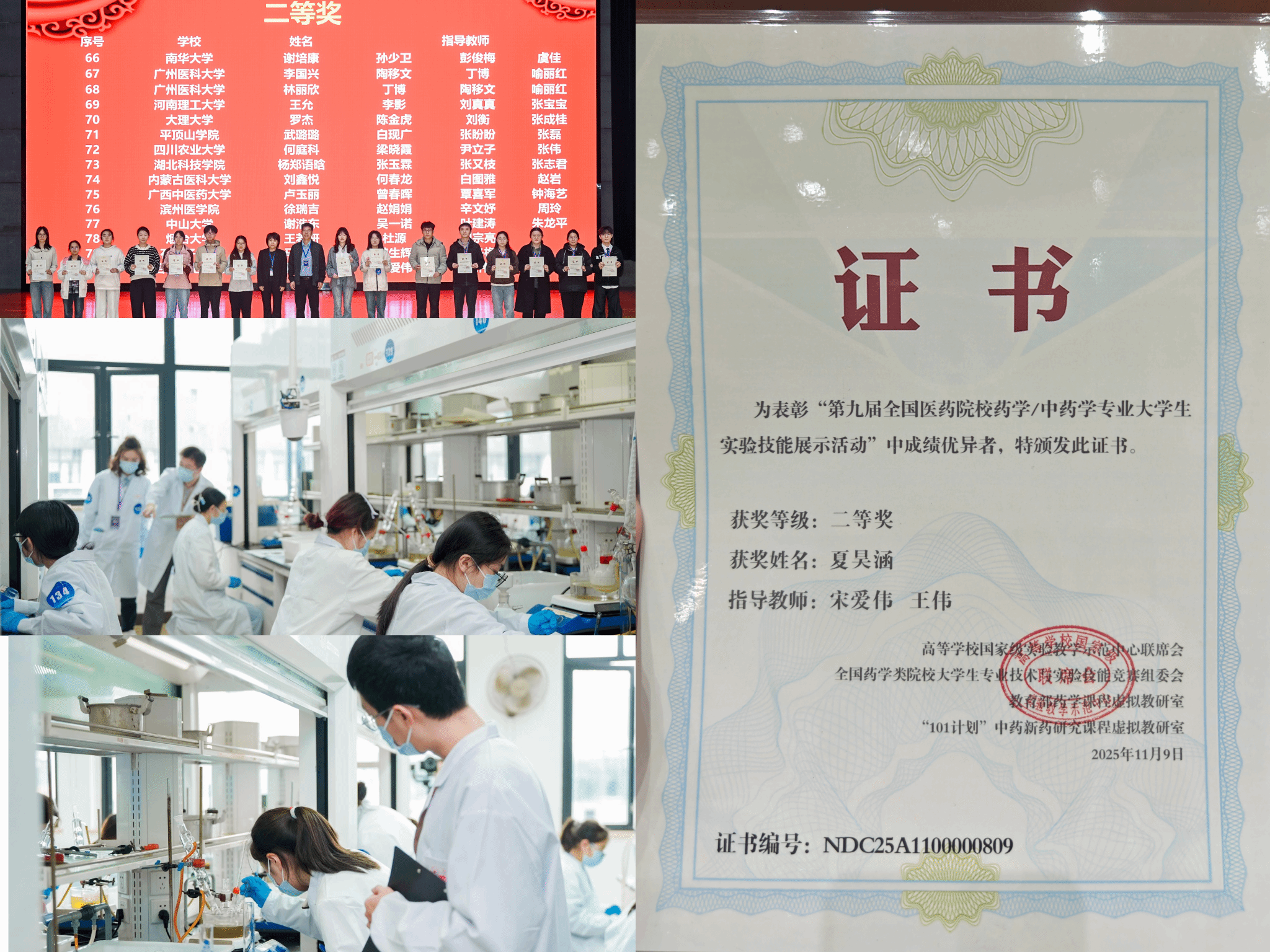 【党建+竞赛】我院学子荣获第九届全国医药院校药学/中药学专业大学生实验技能展示活动全国二等奖