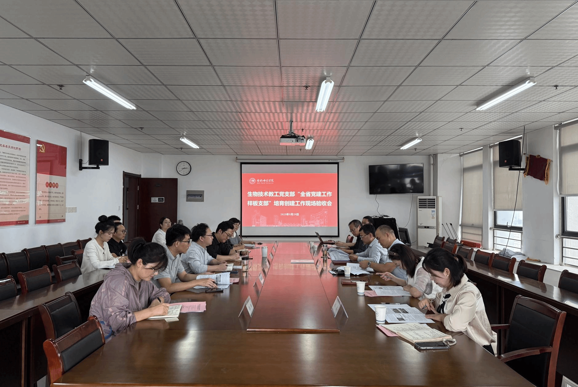 2025年9月29日下午,beat365正版唯一官网生物技术教工党支部“全省党建工作样板支部”培育创建工作现场验收会在锦绣校区行知楼1502会议室顺利召开。校党委委员、副校长、组织部部长赵帮恚莅临指导。巡察办、人事处、组织部、纪委办等相关职能部门负责人参加会议。会议由beat365正版唯一官网党委书记马喆主持,学院领导班子成员、各师生党支部书记、生物技术教工党支部委员及党员代表参加会议。