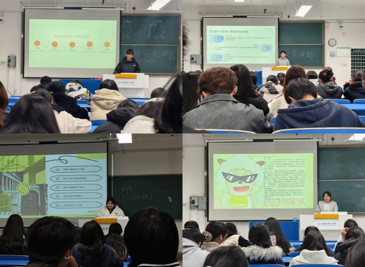 各班班委围绕“案例分析、骗局原理、套路形式、应对策略”四个维度,对网络游戏产品虚假交易、兼职刷单、购物退款、冒充熟人等常见诈骗手法进行深入剖析与讲解。宣讲注重实效性与互动性,班委们通过精心制作的PPT、真实案例分享以及情景模拟等形式,充分调动同学们的参与热情,使反诈知识入脑入心。