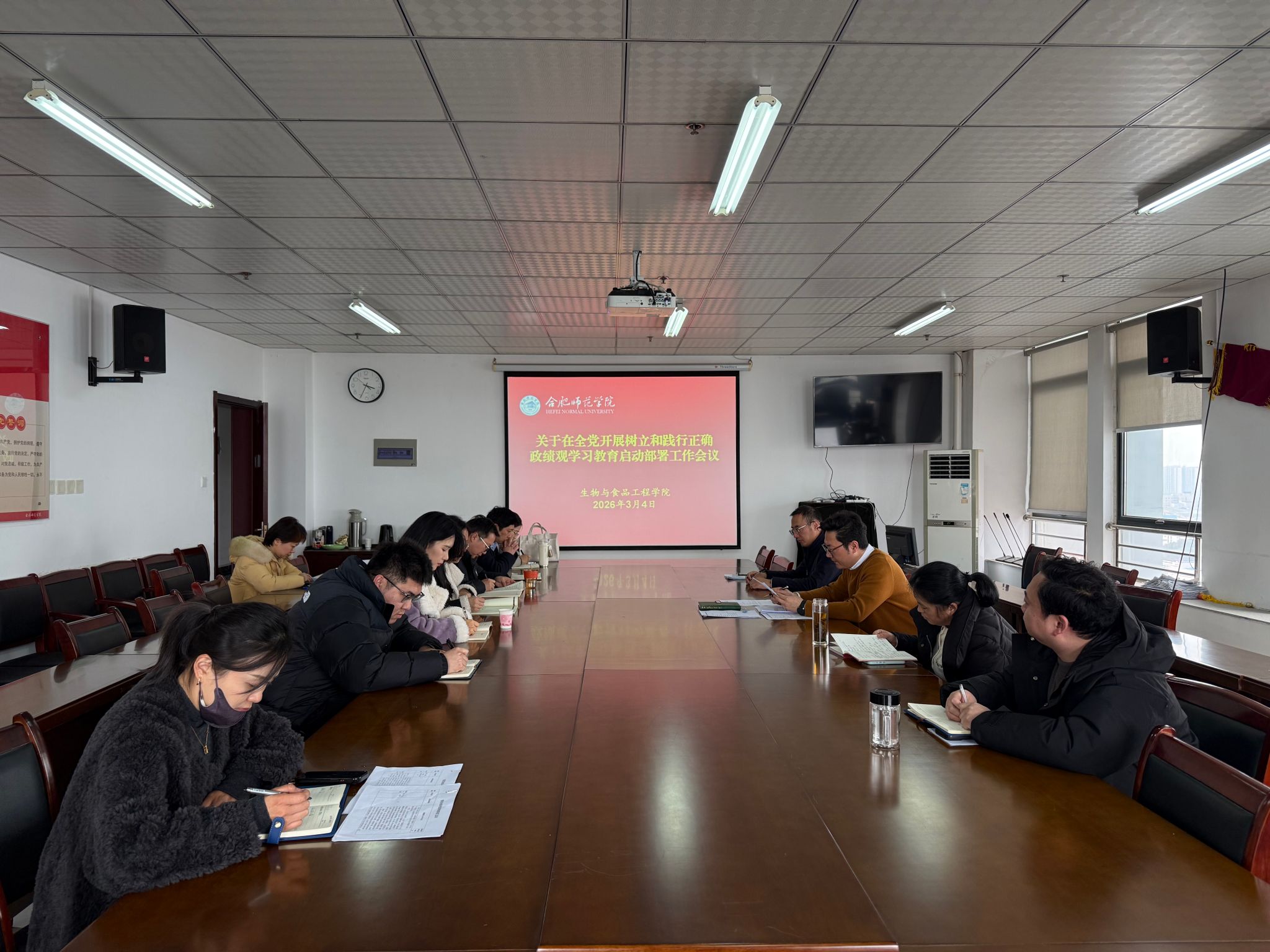 会上,全体参会人员集中学习了中央办公厅印发的《关于在全党开展树立和践行正确政绩观学习教育的通知》,深刻领会中央开展此次学习教育的重大意义、核心要求和工作部署,切实把思想和行动统一到党中央决策部署上来。随后,会议传达学习了《中共合肥师范学院委员会关于在全校开展树立和践行正确政绩观学习教育的实施方案》,精准把握学校党委关于学习教育的具体安排、阶段任务和实施要求,为学院开展学习教育划定工作遵循、明确目标方向。
