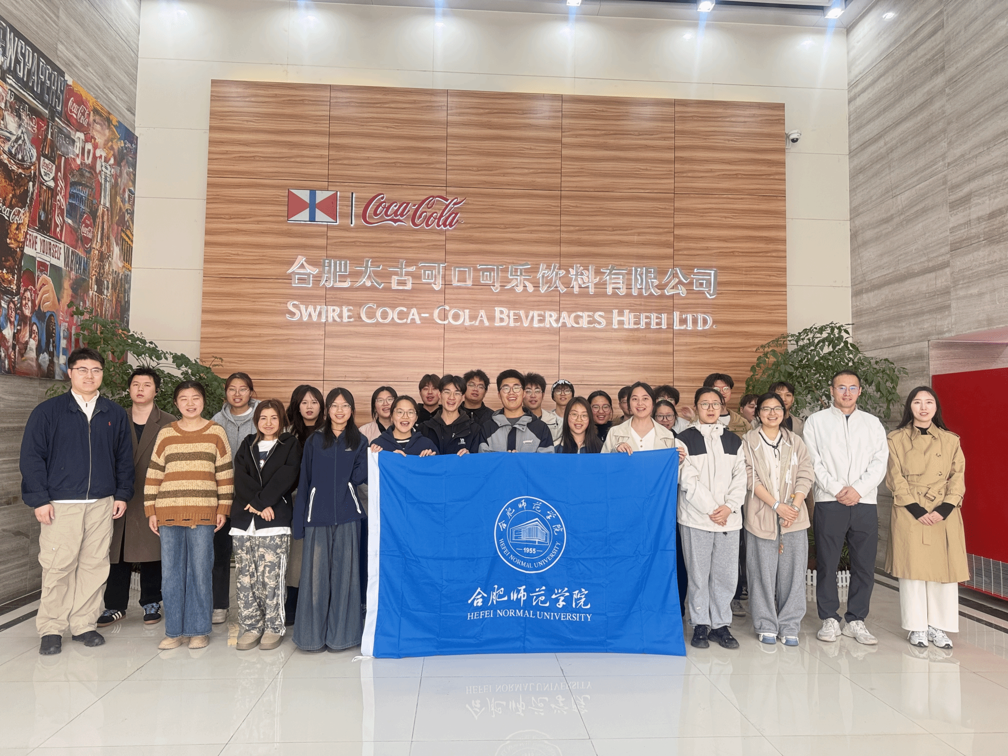 3月26日,beat365正版唯一官网组织师生代表赴合肥太古可口可乐饮料有限公司开展访企拓岗专项活动。学院党委副书记李万成、校悦·历生涯工作室负责人梁悦、2023级辅导员徐浩然老师以及30余名学生代表参加了此次活动。